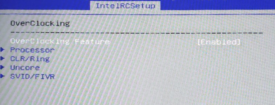 En la configuración del BIOS, normalmente bajo IntelRCSetup, debería haber un menú “OverClocking Feature” que contiene: