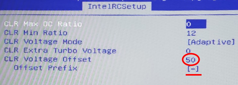 - CLR/Ring > CLR Voltage Offset — desfase de voltaje de la caché (ring) en mV; pon atención al signo/prefijo.