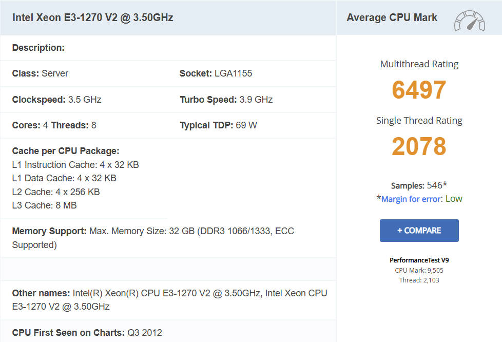 | Model | Xeon E3-1290 v2 |