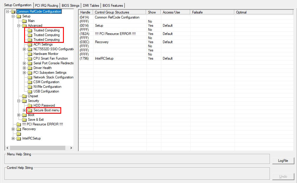 Si no ves este menú, lo más probable es que tu firmware carezca del soporte necesario. Puedes confirmarlo volcando la BIOS (por ejemplo, con Intel FPT o AFUDOS) y abriéndola en AMIBCP.