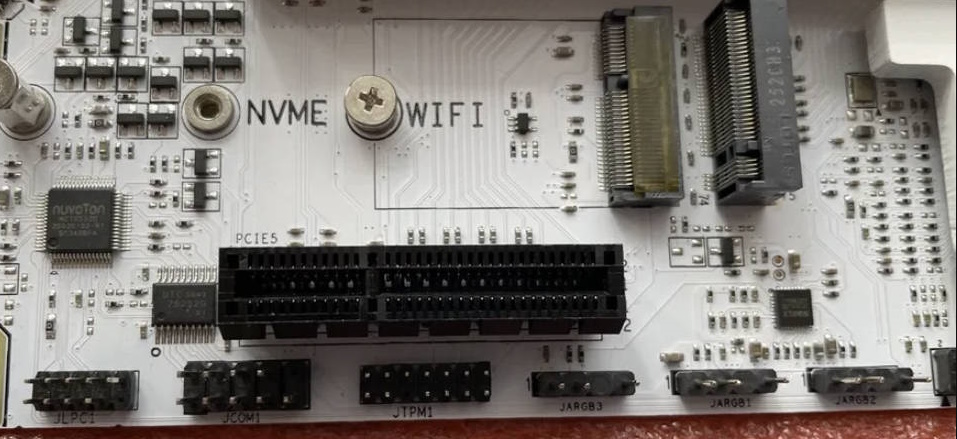 Todos os recursos‑chave estão aqui: VRM forte, controlador ARGB integrado, chipset C612 de classe servidor e suporte a TPM 2.0. Porém, ao olhar de perto, ela não replica integralmente a placa da JGINYUE — há pequenas diferenças. Você recebe três conectores ARGB em vez de cinco; alguns componentes trazem detalhes de cor ligeiramente diferentes; e duas portas SATA III foram deslocadas um pouco. O ponto mais notável: nossa unidade usa um chip de BIOS XMC em vez do chip Winbond mais comum visto na versão da JGINYUE.