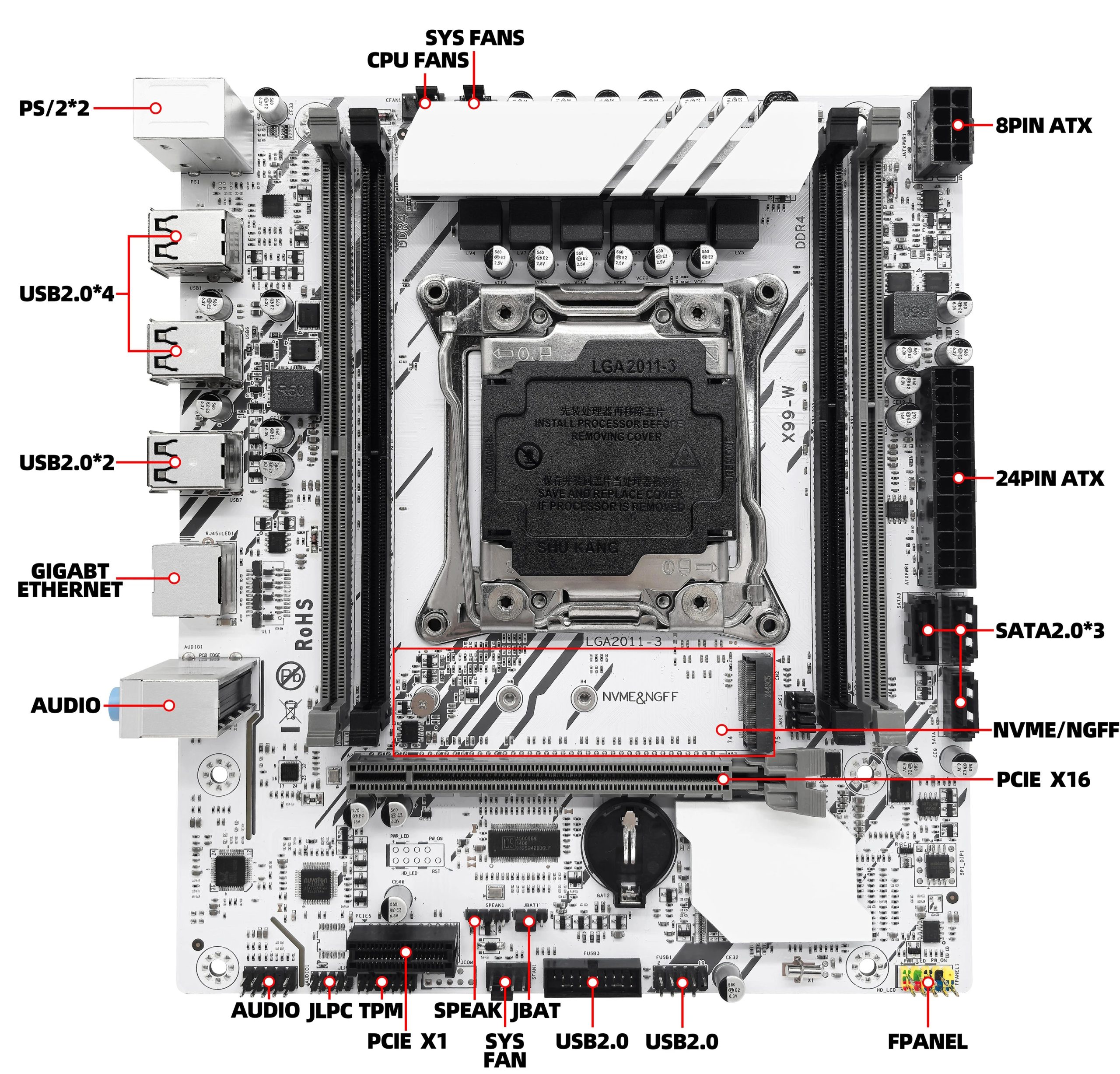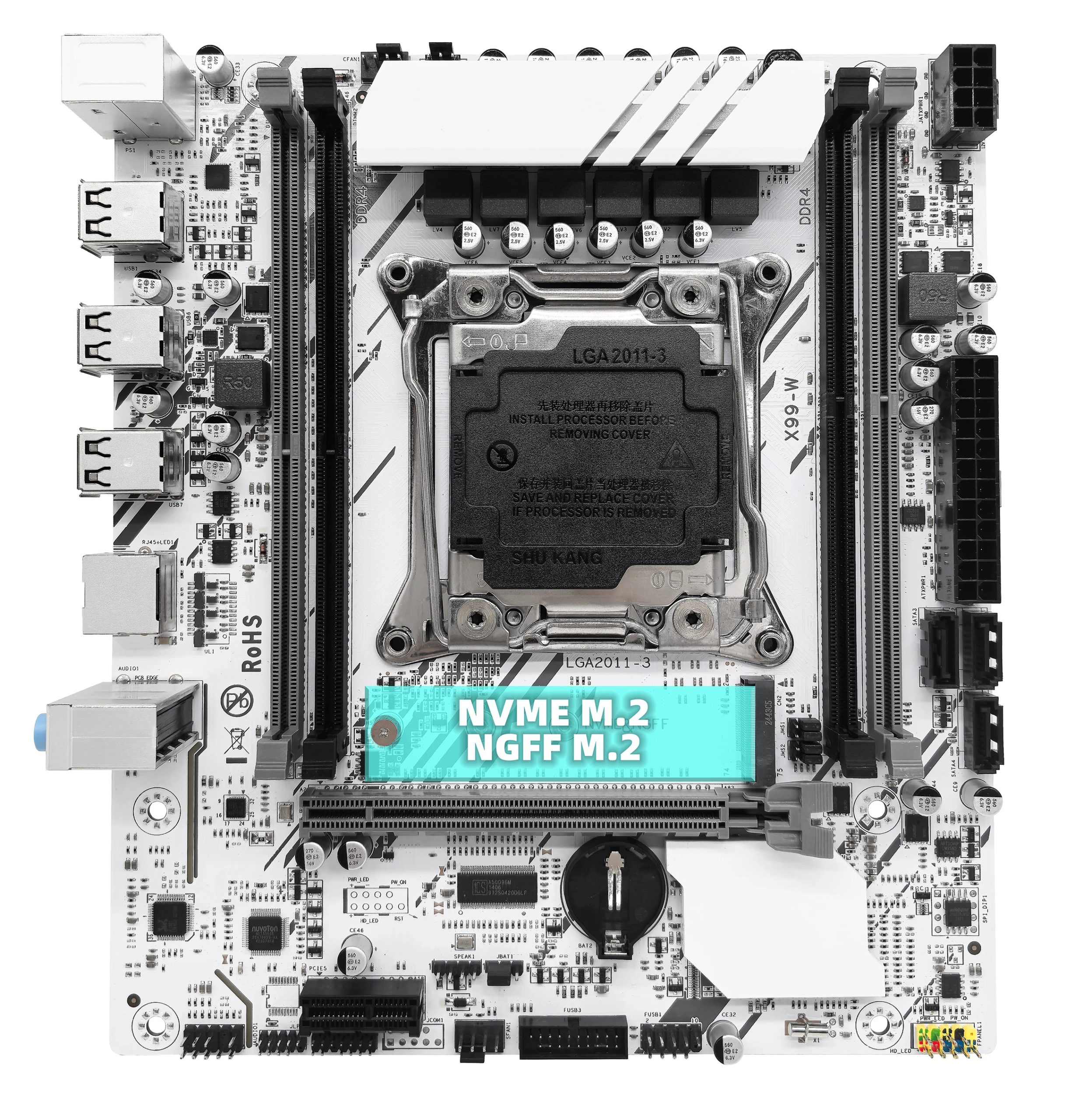 A X99‑W é baseada em chipsets bem básicos e antigos da era HM55/H57, o que resulta em uma escassez severa de I/O moderno. A placa não possui SATA III nem USB 3.0. Embora a falta de SATA mais rápido possa ser parcialmente compensada por um slot M.2 de modo duplo (SATA/PCIe), a ausência de USB 3.0 terá de ser tolerada — ou você precisará usar o único slot x1 para uma placa de expansão USB 3.0.